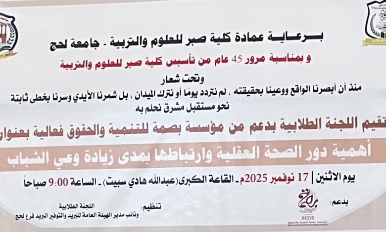 كلية صبر للعلوم والتربية تحتفي بذكرى تأسيسها الـ45 بفعالية طلابية نوعية تعيد أجواء الماضي