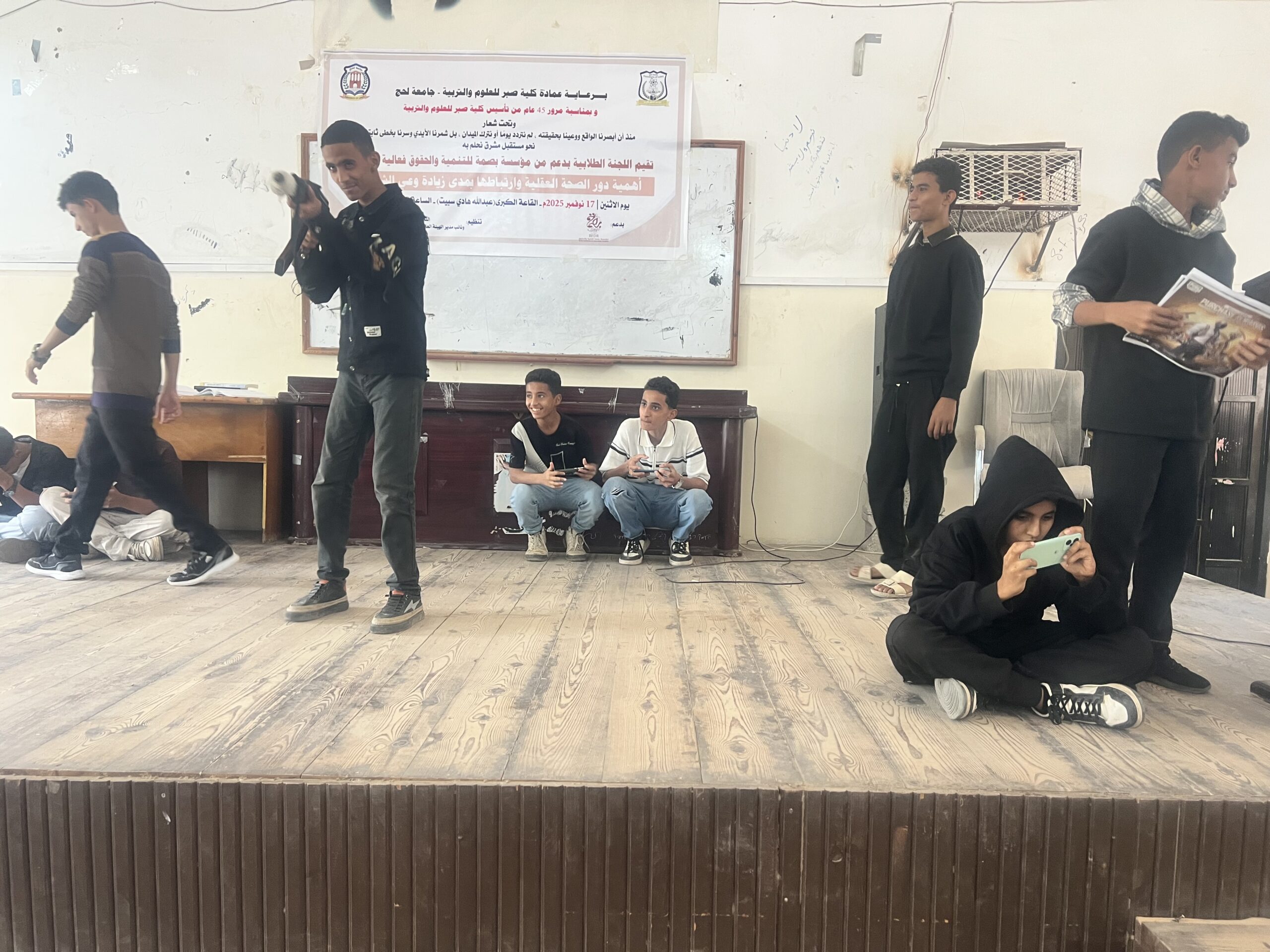 وتواصلت فقرات الحفل بكلمة ألقتها إحدى الطالبات حول أهمية القراءة ودورها في تنشيط العقل وصقل المهارات الفكرية. أعقب ذلك تقديم ثلاثة عروض مسرحية؛ بدأها طلاب مدرسة الراية الأهلية بمشهد صامت يجسّد معاناة الشباب وآثار الإدمان على الألعاب الإلكترونية مثل “PUBG”، عرض مسرحي آخر يحاكي واقع الطلاب الجامعيين وعزوف البعض عن الدراسة، في رسالة توعوية هادفة.